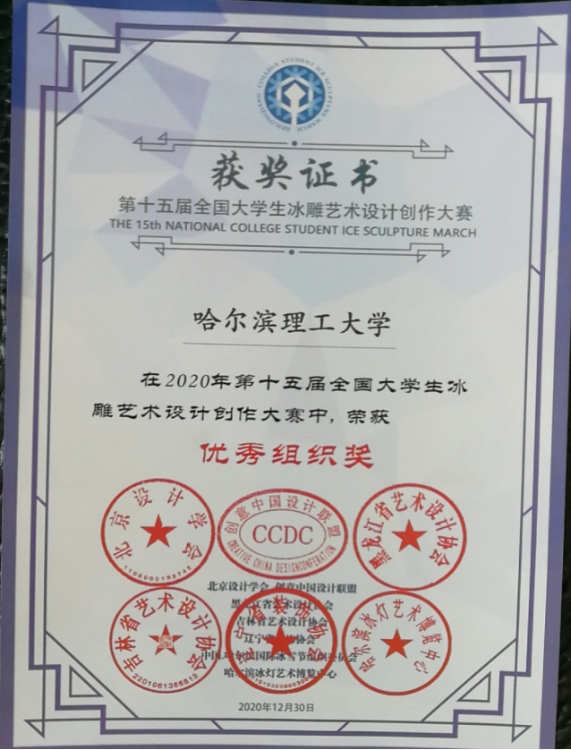 bwin必赢中国官网获第十五届全国大学生冰雕艺术设计创作大赛优秀组织奖