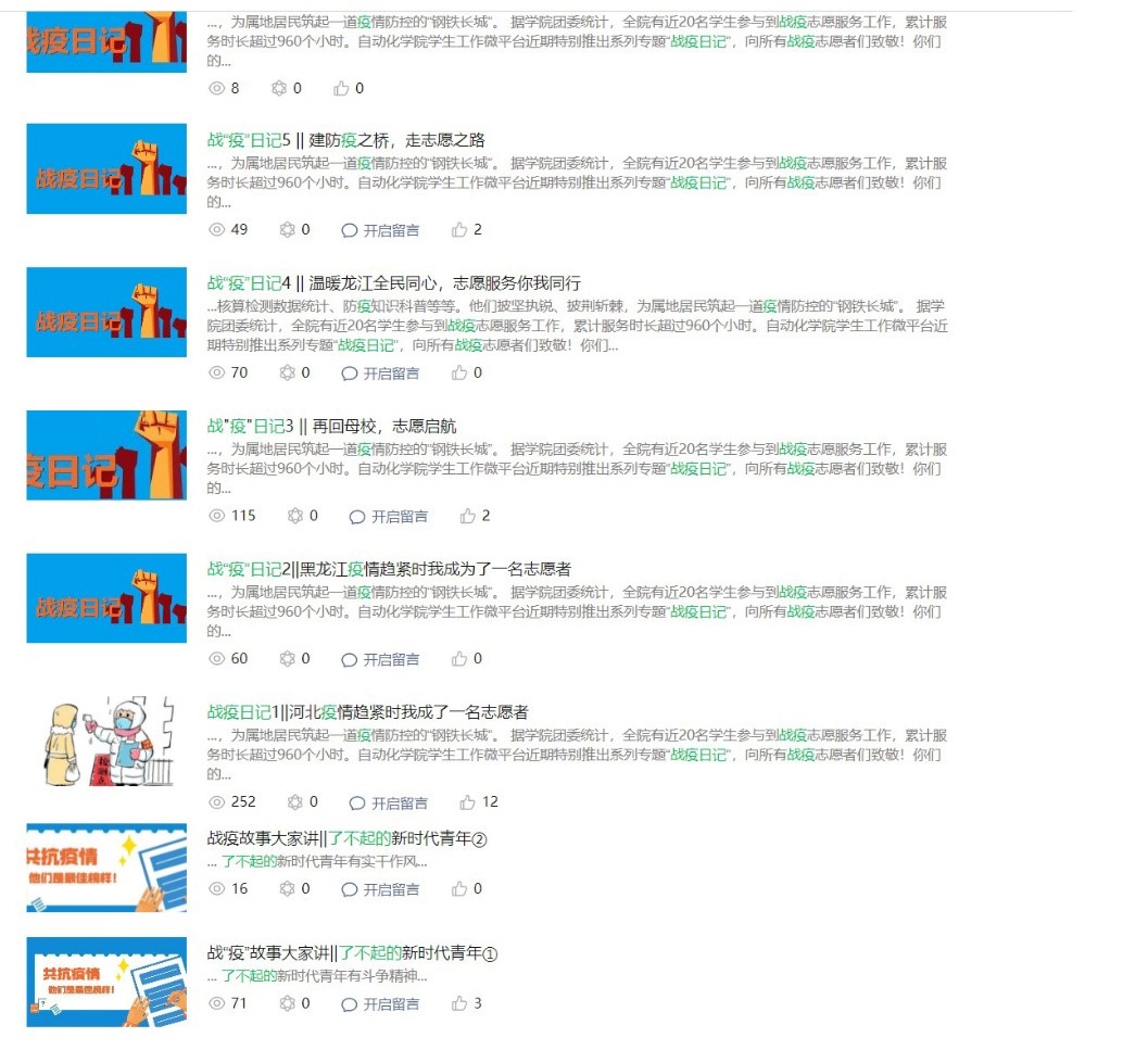 三、做好心理关怀。“隔疫,不隔爱”多策并用为学生筑起 “心理防疫墙”。率先开通学院学生寒假心理服务专线,先后发布两期《自动化学院寒假心理支持资源告知》,畅通学生假期心理帮扶渠道,使学生了解学院、学校的心理支持资源。学院3名学生工作人员积极参与到学校线上心理预约、咨询平台的建设,成为平台咨询师,守候线上,面向全校学生开展心理咨询服务。开设《战疫心理》专栏,每期一个专题,为学生讲解心理学知识,提供给学生调适策略,有效疏导疫情下的心理压力。对于身处中高风险区及其他重点关注学生,辅导员进行定期约谈,实时关注学生们的心理状况和健康水平;对于不同年级学生所面临的不同心理困扰开展线上心理讲座,“手把手”教会学生们应对方法。