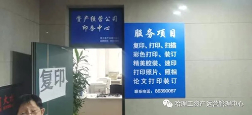 复印室面向师生提供的服务项目:复印、打印、扫描、彩色打印、精美胶装、打印照片、装订、速印。