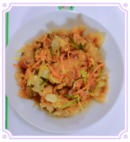 学院办公室王桂萍老师参赛作品—蝴蝶酥 俄语专业田欣欣老师参赛作品—锅包肉