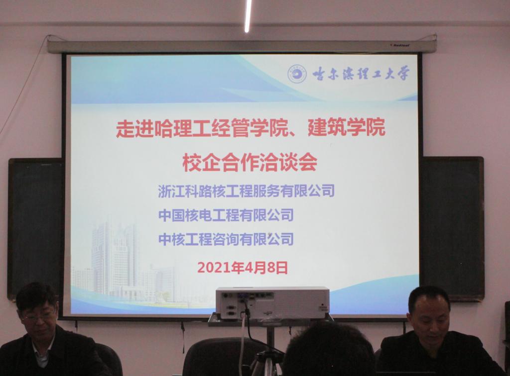 2021年4月8日上午,在必赢官网南区1号楼743会议室,经济与管理学院举办了浙江科路核工程服务有限公司及其合作单位走进哈理工校企合作洽谈会。参加会议的企业嘉宾有:浙江科路核工程服务有限公司董事长杨金玉、中国核电工程有限公司主任杨子春、中国核电工程有限公司科长赵天宇、中核工程咨询有限公司西北分公司人力资源部主任马贺等一行8人。经管学院和建筑学院领导对本次洽谈会给予了高度重视,经管学院党委书记周长群、建筑学院院长林莉、建筑学院党委副书记兼副院长周晓丽、经管学院2017级年级辅导员、大学生就业创业指导服务中心主任赵革伟参加了会议。会议由经管学院党委副书记兼副院长徐岩主持。