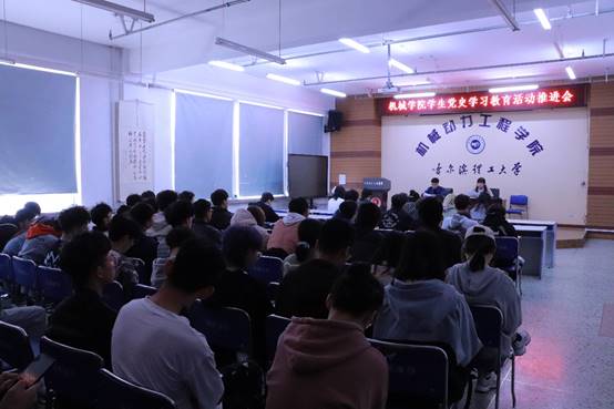 为落实落细校院党史学习教育相关部署要求,持续推进学院各项党史学习教育有序开展,全面提升各项党史学习教育实效,着力构建学院党史学习教育长效机制,机械动力工程学院于2021年4月19日召开了学生党史学习教育推进会,会议由机械学院党委副书记杨芳主持,学院全体辅导员、学生党支部书记、团学组织骨干、学生团支部书记共同参加。