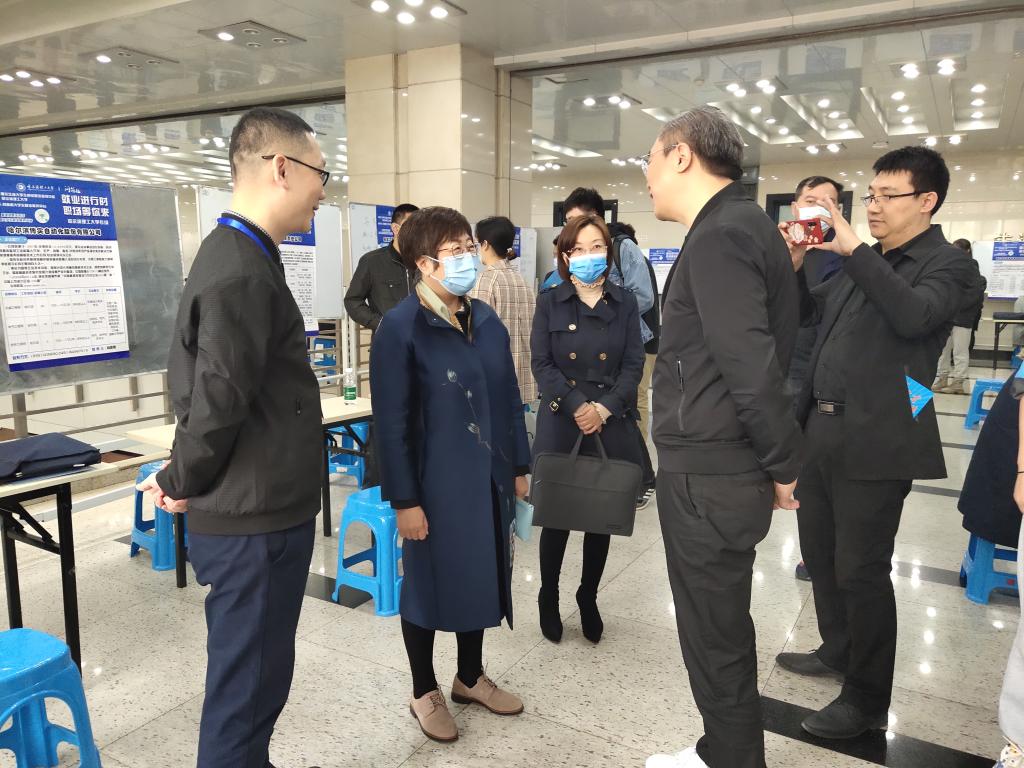 校党委副书记陆岩到招聘会现场检查指导,听取学生处关于本场招聘会召开和参会企业情况的汇报,了解毕业生留省就业状况,并对进一步做好必赢官网2021届毕业生留省就业提出具体要求。在航天科工哈尔滨风华有限公司、哈尔滨轴承集团有限公司、黑龙江新和成生物科技有限公司、黑龙江省黑建一建筑工程有限责任公司等国有企业及常年来必赢官网开展招聘活动的用人单位展位前,陆岩向企业招聘工作人员了解企业用人需求情况,就这些企业单位对学校就业工作长期支持和毕业生认可表示感谢,并代表学校向在企业工作的校友带去诚挚的问候。招聘会结束后,陆岩一行又到第三会议、第四会议室,分别与来校招聘的中国广核集团有限公司、深圳市开步电子有限公司的领导进行了交流。