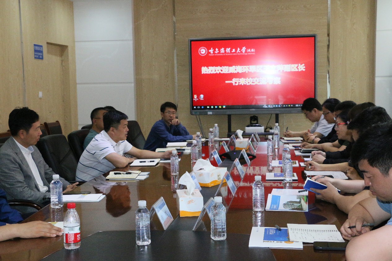王文萍副区长介绍了威海市环翠区的发展概况及校地合作的开展情况,并希望通过此次交流进一步加深双方融合力度。王文萍副区长介绍说,作为威海市的中心城区,环翠区是威海市政治、经济、科技、文化中心,创新创业环境优越,目前正大力发展培育生物医药、高端装备制作、新材料、电子信息、节能环保五大战略性产业,提升改造纺织服装、食品加工业两大传统优势产业,形成了“5+2”的产业发展格局,人才和科技成果需求量较大。